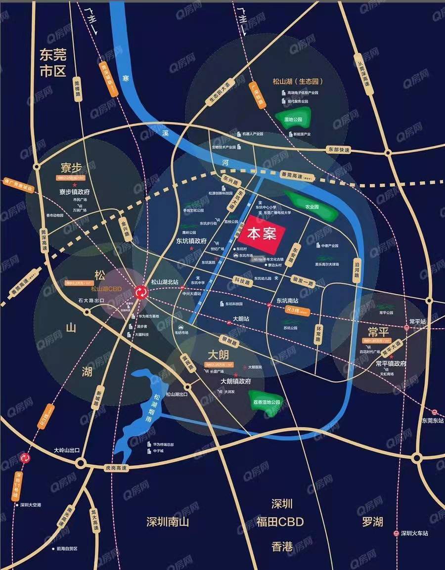 四高速多干道:灣區(qū)1小時(shí)生活圈,莞深、番莞、虎崗等高速快速通勤莞深,生態(tài)園大道、東坑大道、東興路等多條干道連接松山湖與周邊鎮(zhèn)街,生活主場(chǎng)隨意切換
