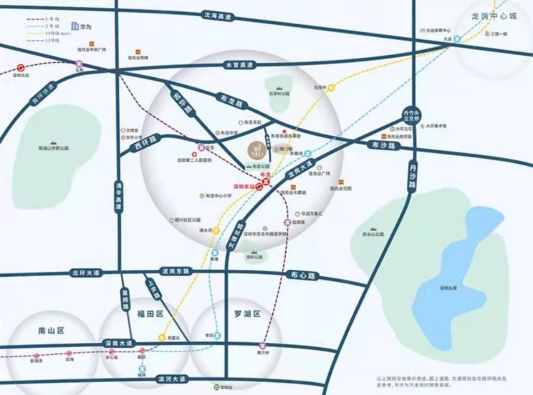3地鐵:項目距離3、5、14(在建預計明年通車)號線匯聚的布吉站直線距離約500m,距離5號線長龍站直線距離約600m。實現(xiàn)無縫接駁羅湖、福田、南山、寶安核心區(qū)。