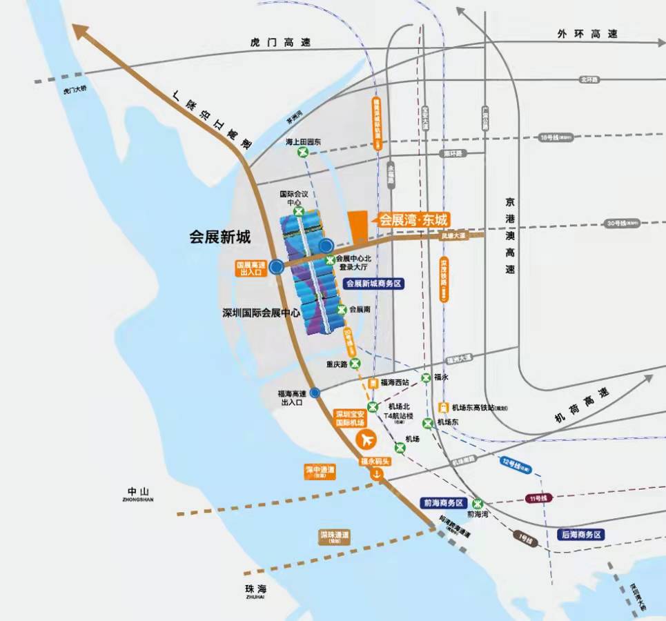 地鐵11號線福永站,地鐵12/20號線(在建),廣深沿江高速、外環(huán)高速和濱江大道快速路