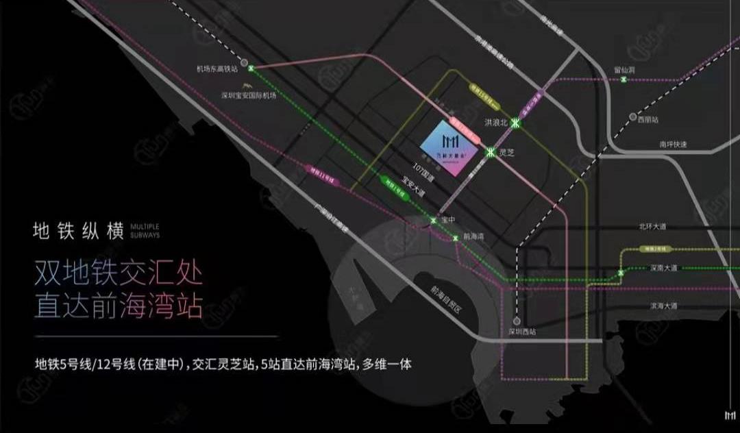 4、交通配套:雙地鐵交匯處,通達灣區(qū)各地,地鐵5號線/12號線(在建),交匯靈芝站,地鐵5站即可直達前海灣站,多維一體;創(chuàng)業(yè)二路主干道通達,縱貫寶安黃金發(fā)展軸心,周邊多條縱向交通如創(chuàng)業(yè)一路、廣深公路、寶安大道、京港澳高速、北環(huán)大道等高快速干道可便捷地通往前海、寶中、南山、福田等中心區(qū)及珠三角重要城市;